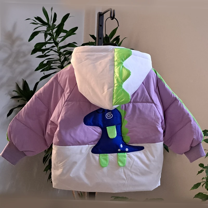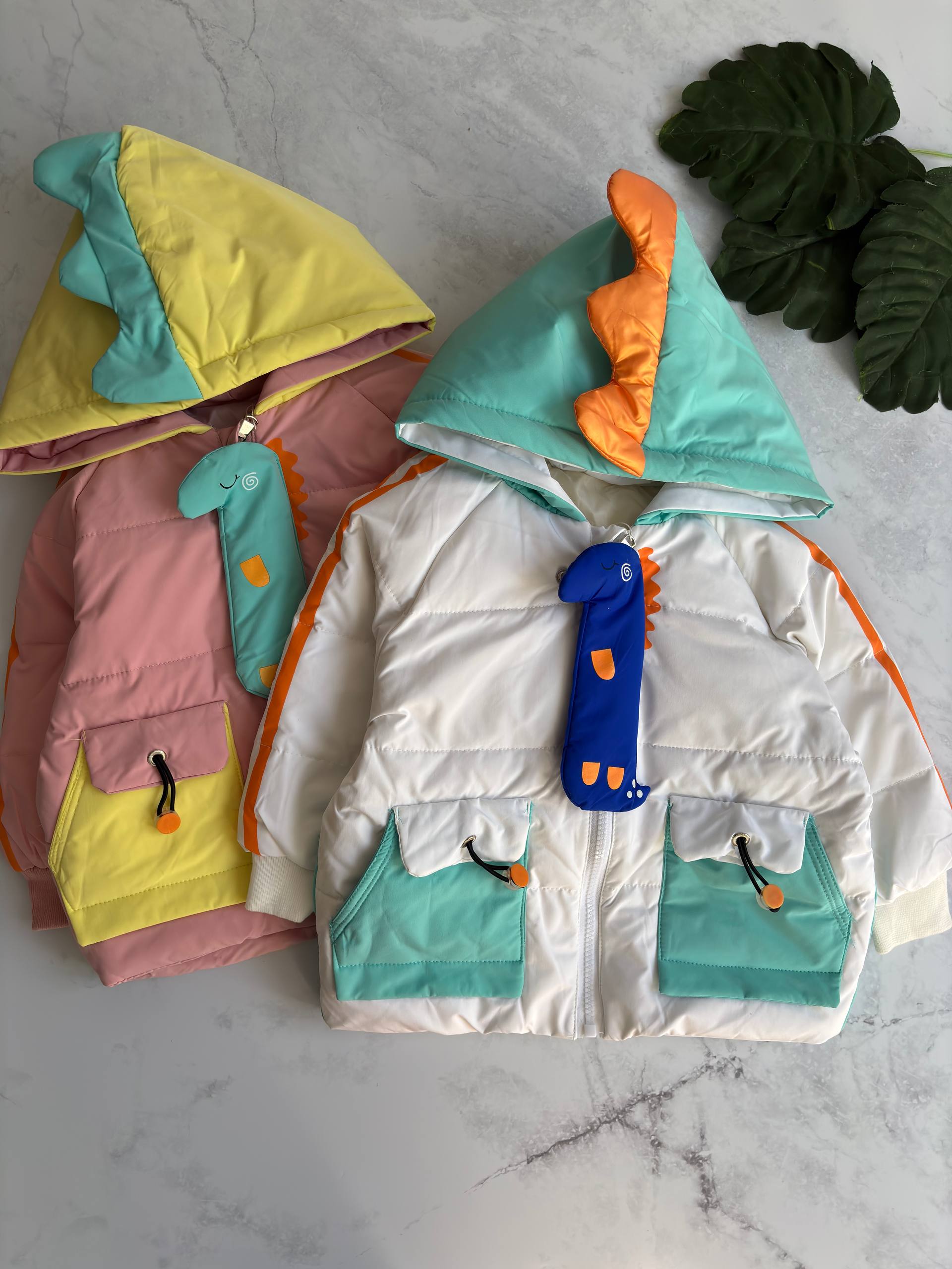 این کاپشن وارداتی با طراحی دایناسوری بامزه روی کلاه، ترکیب رنگهای شاد و جنس گرم و نرم، تبدیل میشه به همون گزینهای که هر کوچولویی عاشقش میشه! ❄️💛